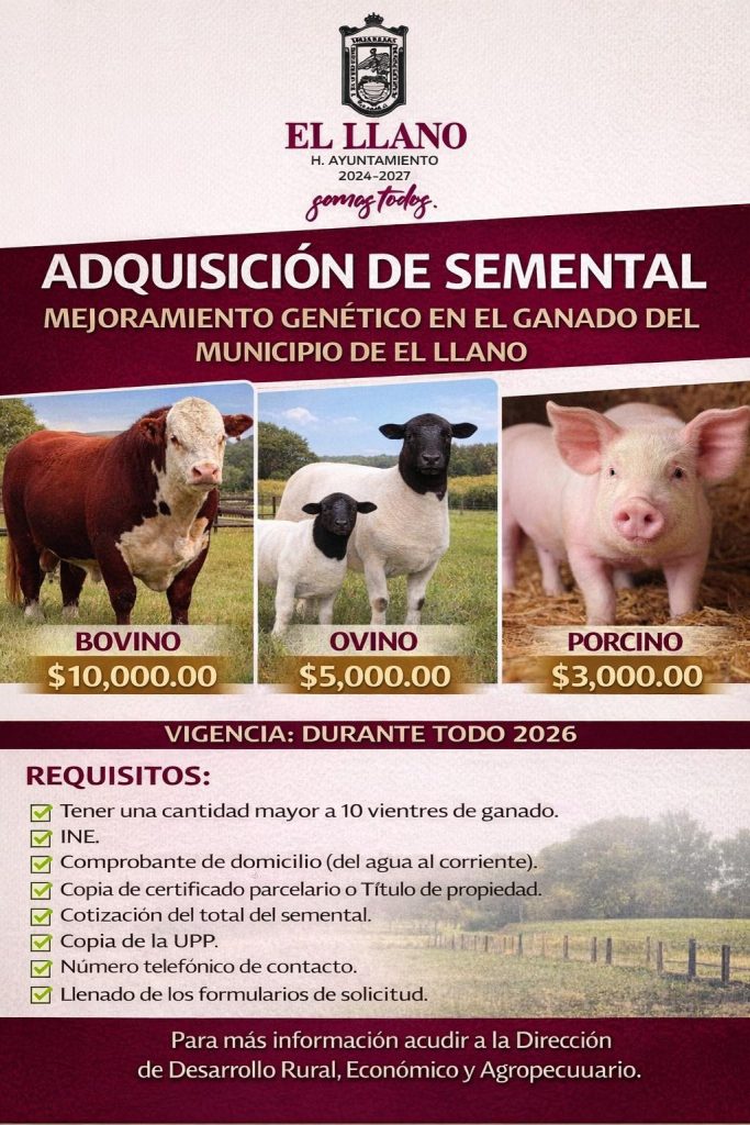 El Ayuntamiento de El Llano, a través de la Dirección de Desarrollo Rural , Económico y Agropecuario, te invita a participar en el programa: